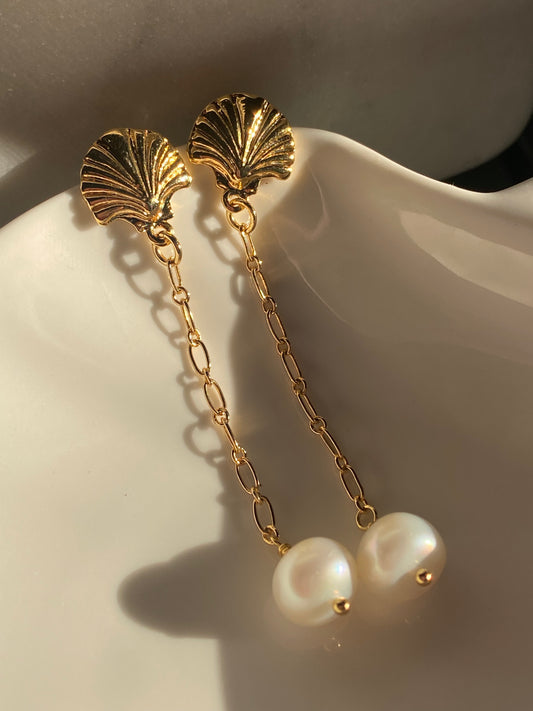 Cowrie Shell Pearl Earrings